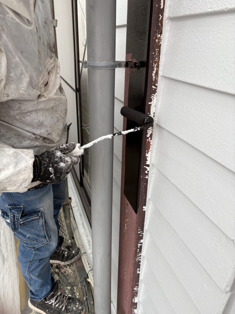 下塗りのサビ止め塗料には、スーパーザウルスⅡを使用しました。この塗料は遮水性が高く、塗膜が水分の浸入を防いでサビの発生を抑える特長があります。