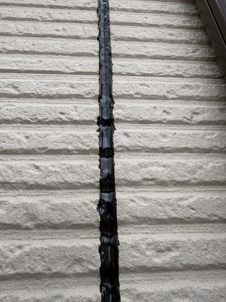 今回は玄関の外壁が白、それ以外はグレーなので、色が乗りやすいようホワイトとブラックのシーリング材を使い分けました。