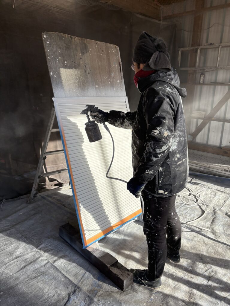 こんにちは、真面目にコツコツ50年住宅塗装に特化した神山塗装工業株式会社の鈴木圭太です。今日の作業は雨戸の吹き付け塗装でした。