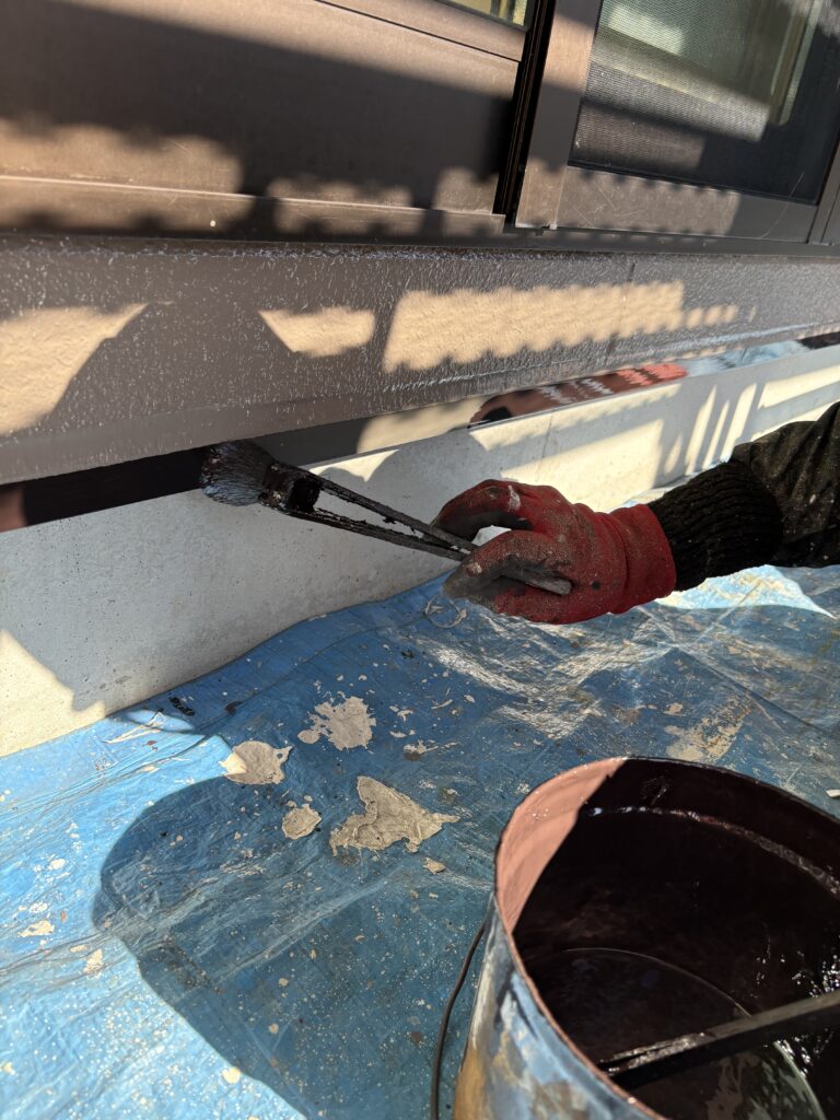 こんにちは、神山塗装工業株式会社の鈴木圭太です。今日の作業は水切りの上塗りでした。
