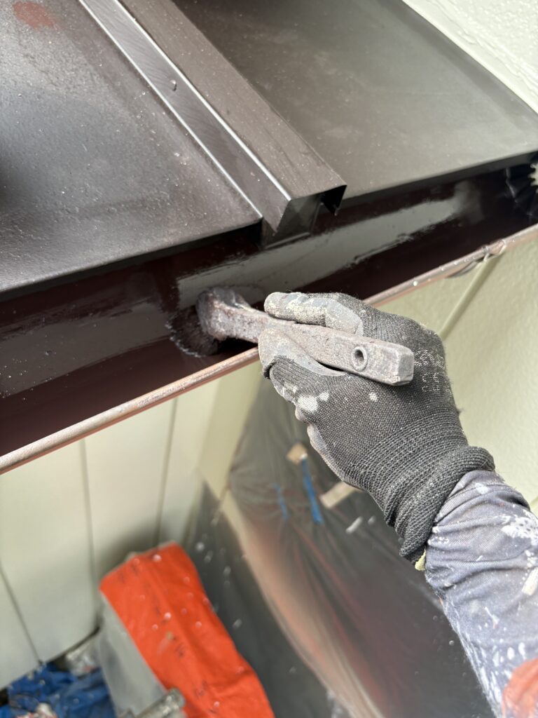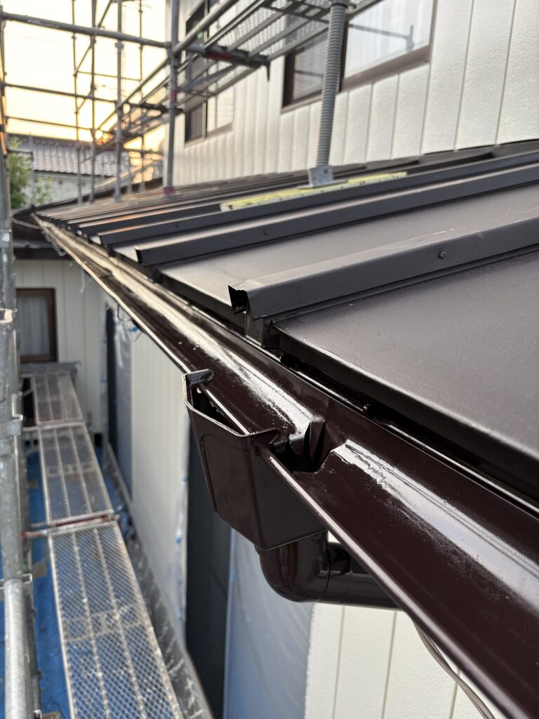 現場ブログ2025.08.29塩谷町で雨樋内側の上塗りを行いましたこんにちは、神山塗装工業株式会社の鈴木圭太です。今日の作業は雨樋内側の上塗りでした。雨樋の内側には落ち葉や土埃などが溜まっているので、まずはケレンを行い塗装が出来る状態にしておきます。汚れを除去した後はシリコン塗料で塗装していきます!今回はパワーフロンマイルドを使用しました。他の塗装屋では雨樋の内側まで塗装する事はありませんが、神山塗装工業では内側までしっかり塗装いたします!外壁塗装をお考えのお客様はぜひ、神山塗装へお任せください。無料お見積はこちら