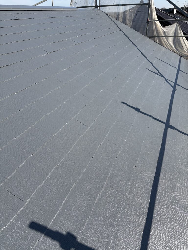 こんにちは、神山塗装工業株式会社の鈴木圭太です。今日の作業はコロニアル屋根の上塗りでした。