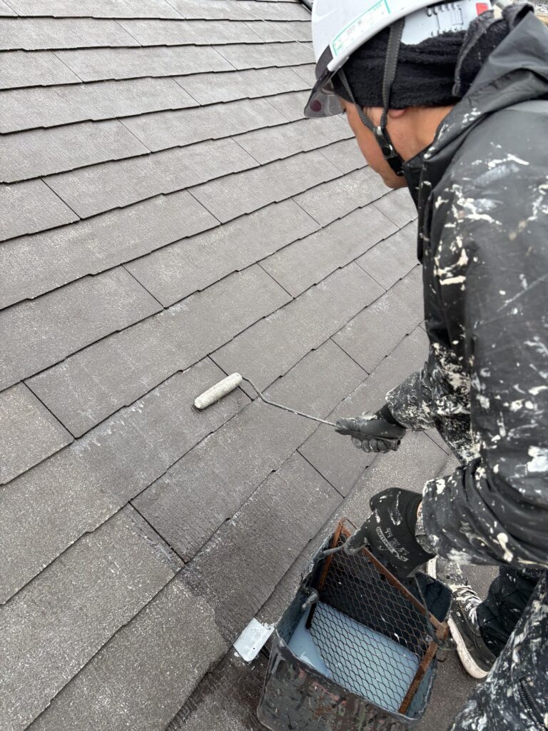 こんにちは、真面目にコツコツ50年住宅塗装に特化した神山塗装工業株式会社の鈴木圭太です。今日の作業はコロニアル屋根の下塗りでした。