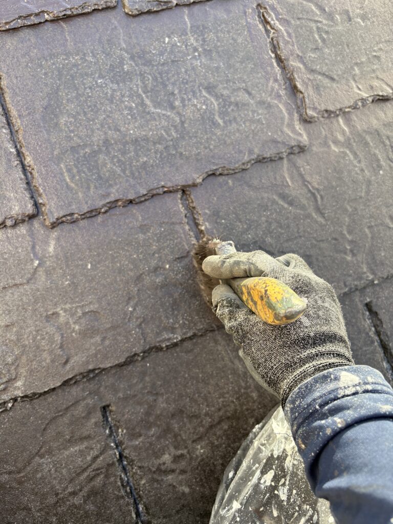 こんにちは、神山塗装工業株式会社の鈴木圭太です。今日の作業はコロニアル屋根の中塗りでした。