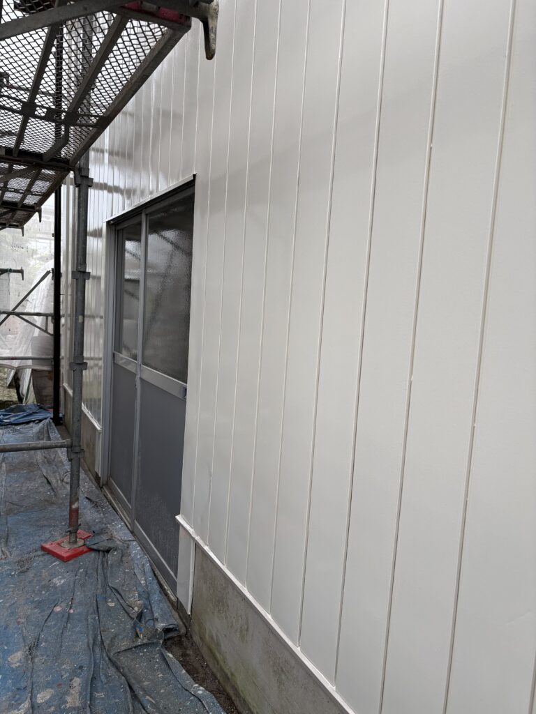 こんにちは、真面目にコツコツ50年住宅塗装に特化した神山塗装工業株式会社の鈴木圭太です。今日の作業はトタン外壁の上塗りでした。