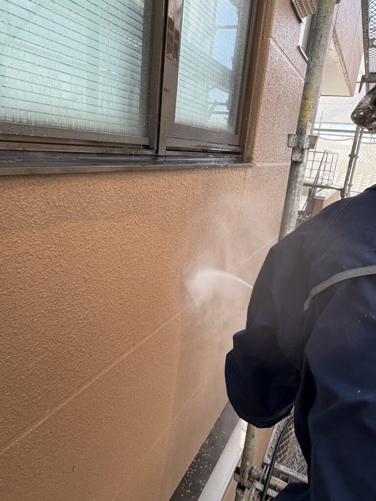 現場ブログ2025.09.26さくら市で外壁の高圧洗浄を行いましたこんにちは、神山塗装工業株式会社の鈴木圭太です。今日の作業は外壁の高圧洗浄でした。高圧洗浄は外壁の旧塗膜や汚れを洗い流し、塗料と外壁の密着力を上げるために行います。洗浄で出る汚水が飛散しないようにブルーシートを張るなど、周辺への配慮も欠かせません。高圧洗浄が不十分だと塗装が長持ちしない、美しい仕上がりが得られないなどの問題が起こるので、高圧洗浄は外壁塗装の工程において重要な作業となっています!外壁塗装をお考えのお客様はぜひ、神山塗装へお任せください。無料お見積はこちら