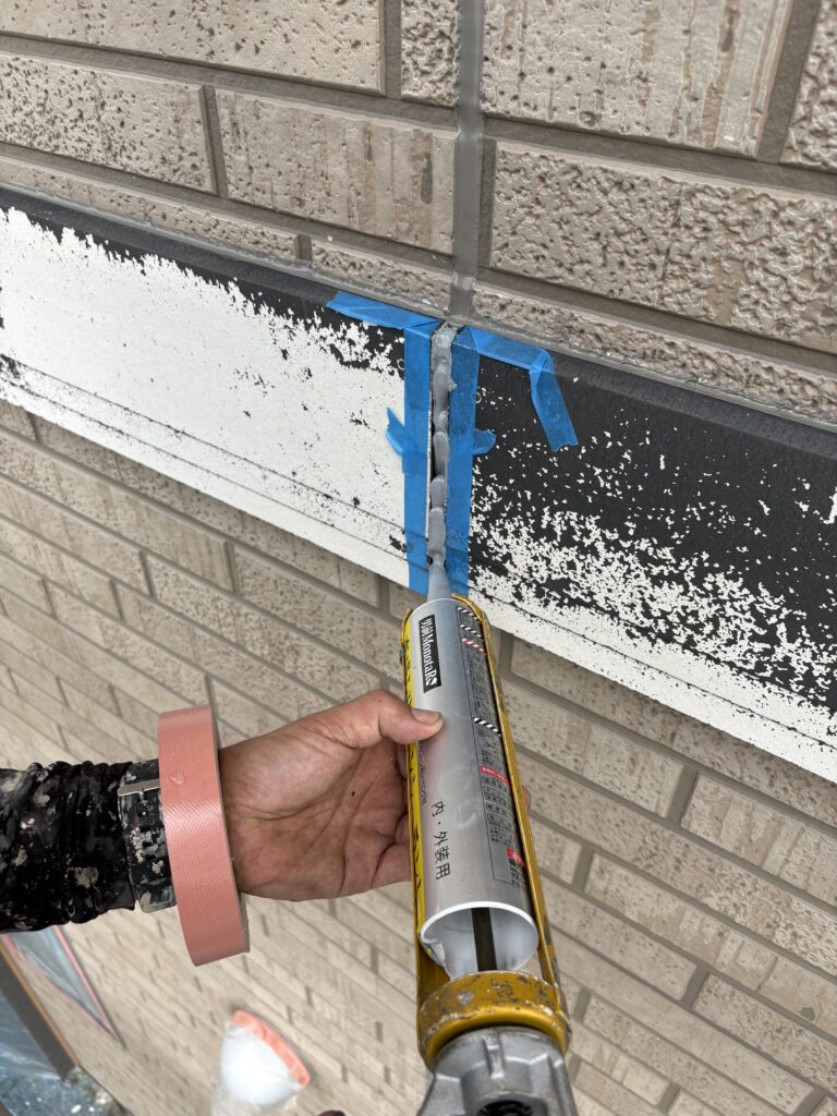 劣化したシーリング材は撤去し新しく打ち替える必要があります。今回は外壁目地の他に窓枠や幕板のシーリング材も打ち替えました!