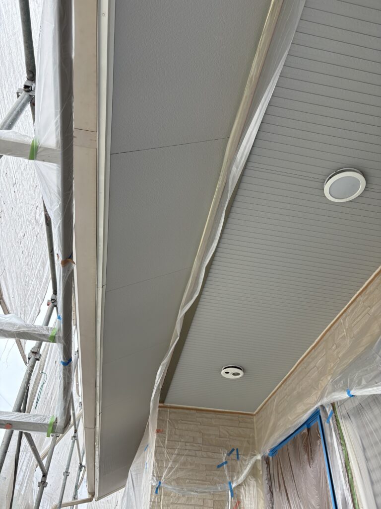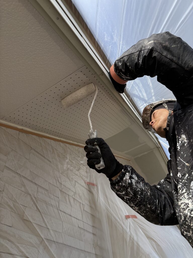こんにちは、神山塗装工業株式会社の鈴木圭太です。今日の作業は軒天の上塗りでした。
