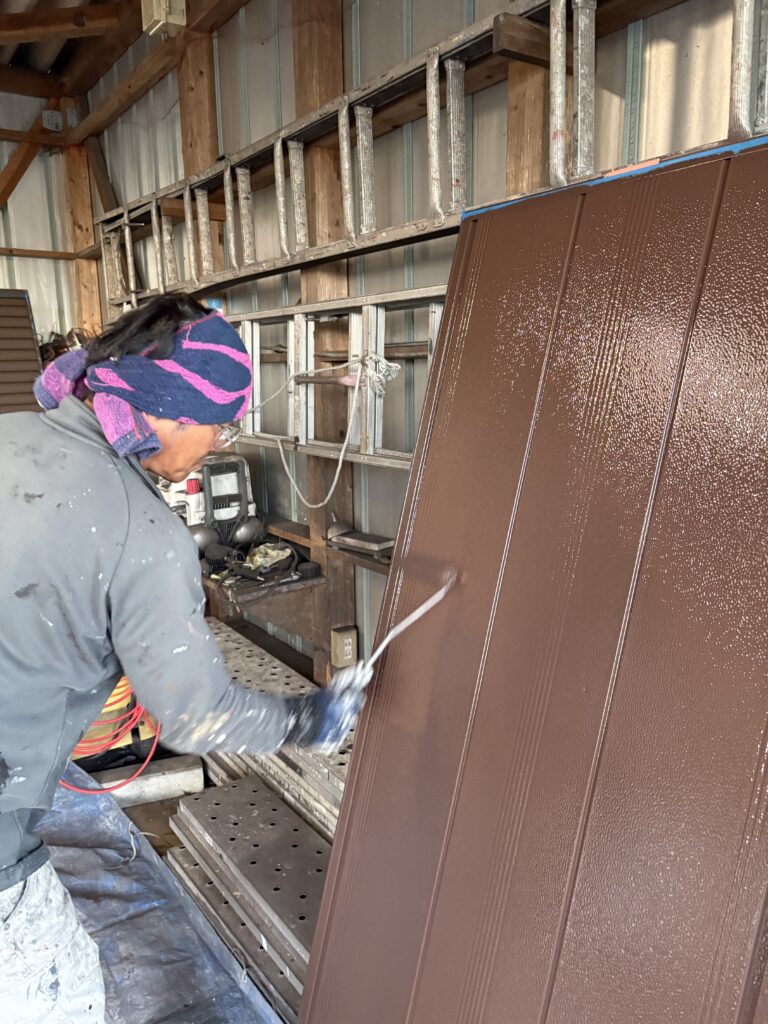 下塗りと上塗りにはフッ素樹脂塗料のパワーフロンマイルドを使用しました。パワーフロンマイルドは塗膜の劣化要因である紫外線や酸性雨、熱に強い塗膜で塗装面を保護します!