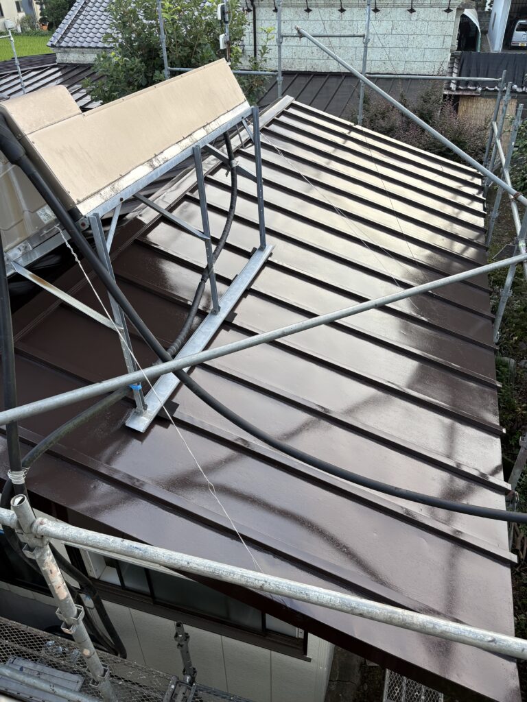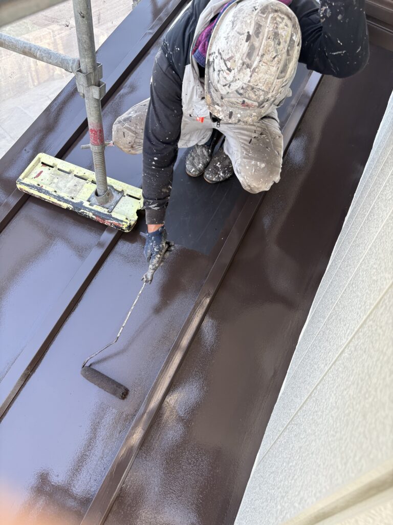 こんにちは、神山塗装工業株式会社の鈴木圭太です。今日の作業はトタン屋根の上塗りでした。