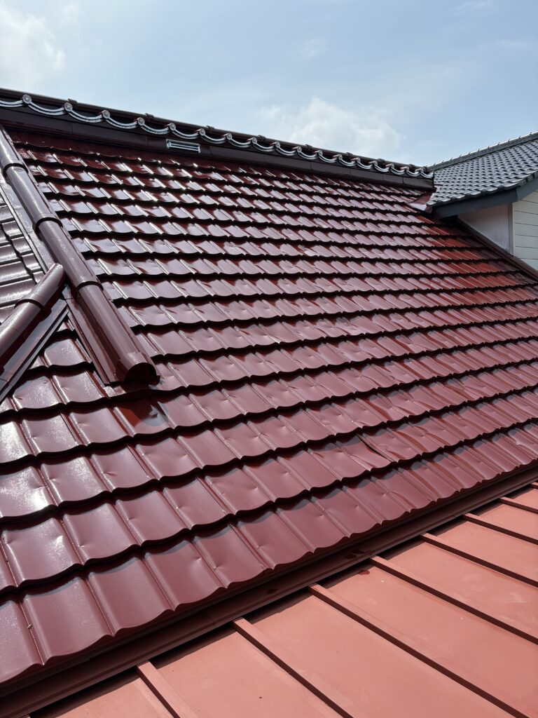 上塗りに使用したルーフマイルドSiRは高光沢が特徴で、日光が当たると艶が出る美しい仕上がりになります!
