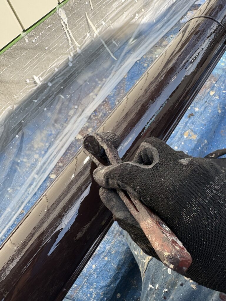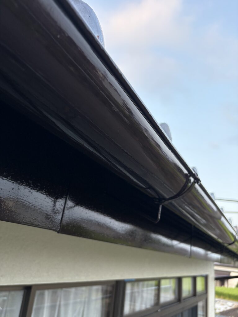 現場ブログ2025.08.30塩谷町で破風・雨樋の上塗りを行いましたこんにちは、神山塗装工業株式会社の鈴木圭太です。今日の作業は破風・雨樋の上塗りでした。破風・雨樋の塗装は下・上塗りの計2回行います。下塗り、上塗り共にフッ素塗料を使用しました。塗装前の破風はサビが発生していたので、サンドペーパーでサビ落としし、仕上がりが美しくなるようにしてから塗装しました。下塗り、上塗りに使用したパワーフロンマイルドは塗膜の耐久性が高いので、破風や雨樋の美しい外観を長期間保つ事が可能です!外壁塗装をお考えのお客様はぜひ、神山塗装へお任せください。無料お見積はこちら