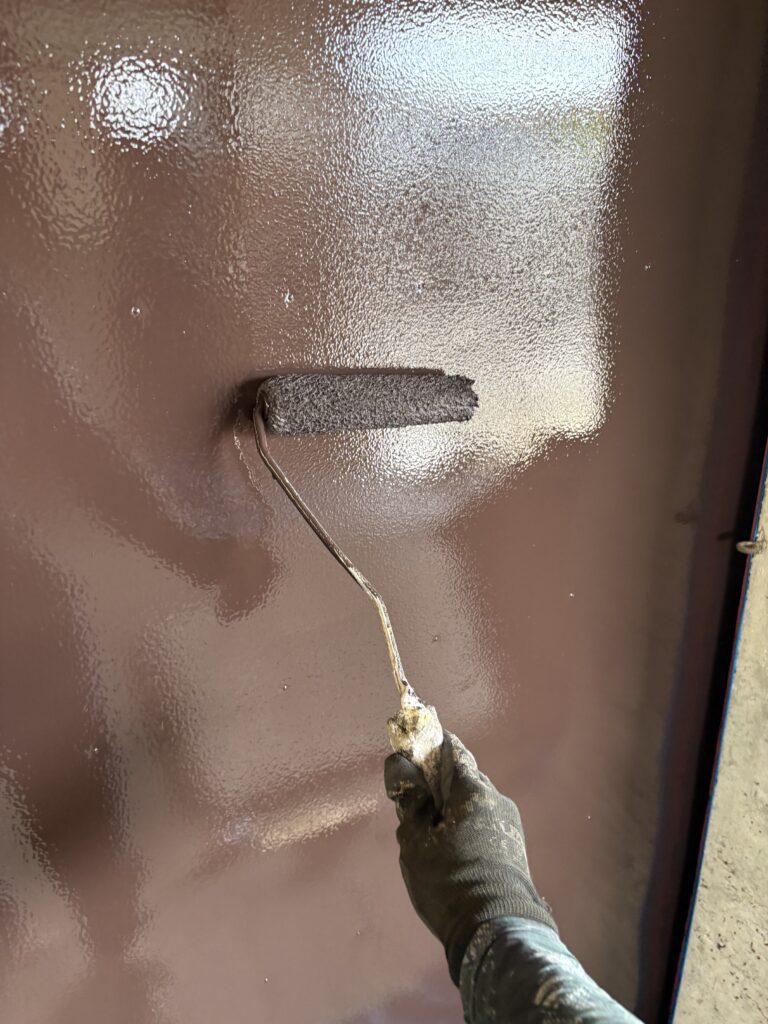 こんにちは、神山塗装工業株式会社の鈴木圭太です。今日の作業は納屋扉の上塗りでした。