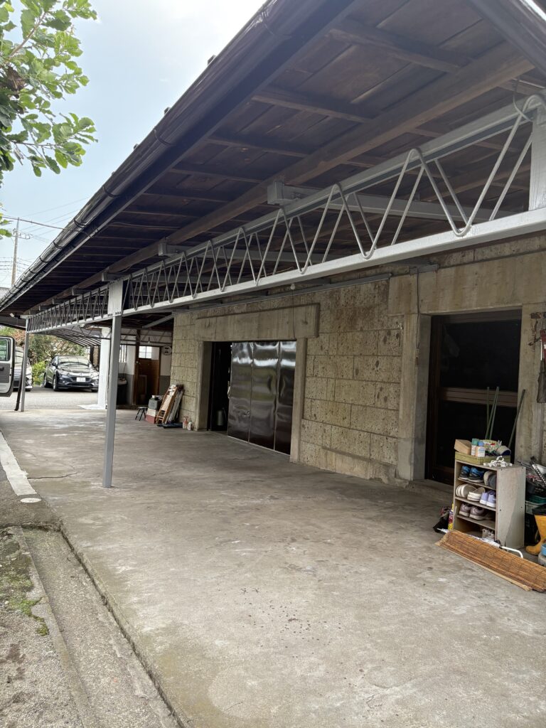 こんにちは、神山塗装工業株式会社の鈴木圭太です。今日の作業は納屋鉄骨の上塗りでした。