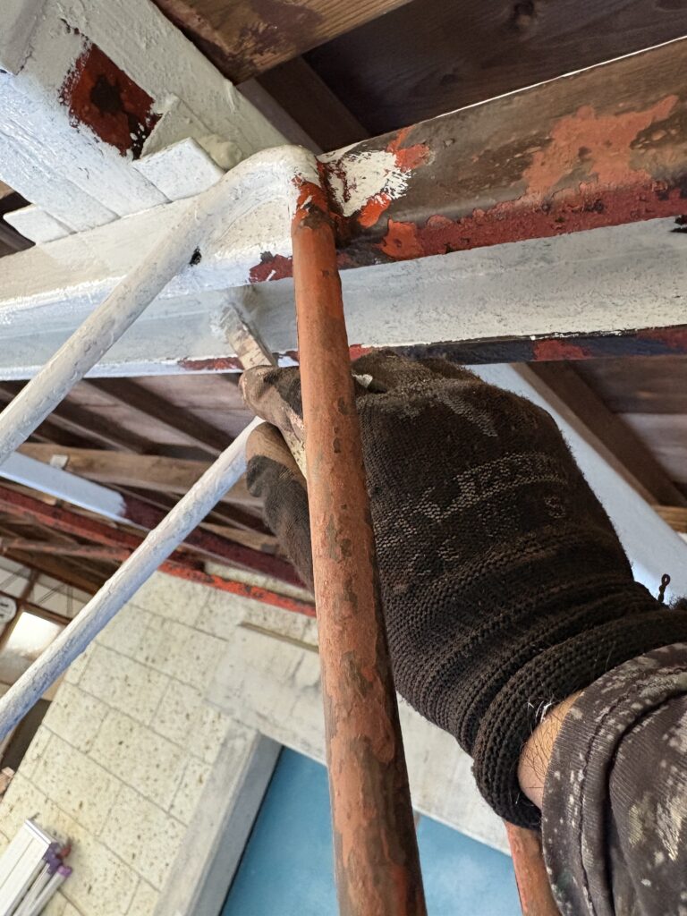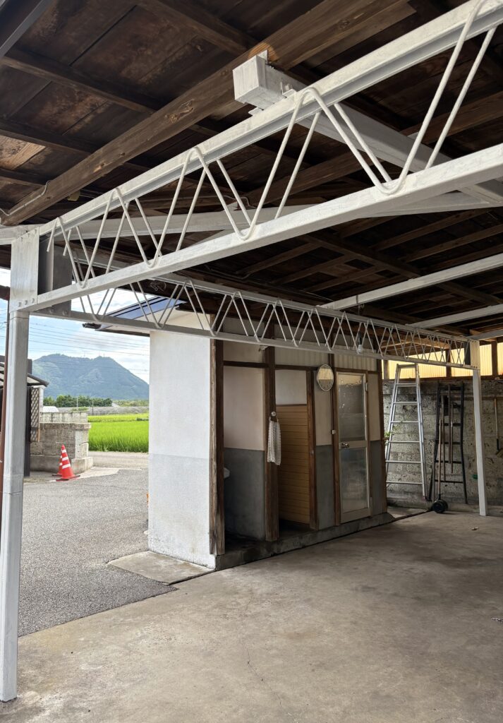 こんにちは、神山塗装工業株式会社の鈴木圭太です。今日の作業は納屋鉄骨の下塗りでした。