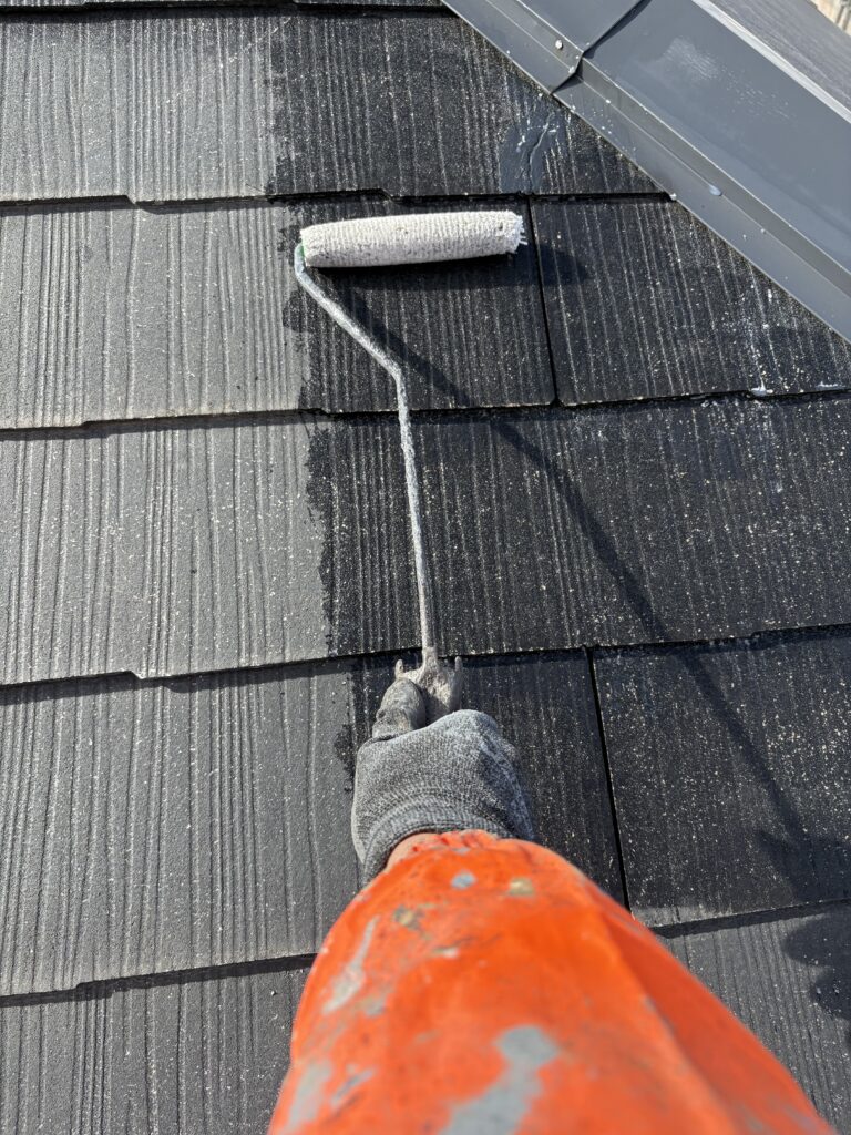 こんにちは、神山塗装工業株式会社の鈴木圭太です。今日の作業はコロニアル屋根の下塗りでした。