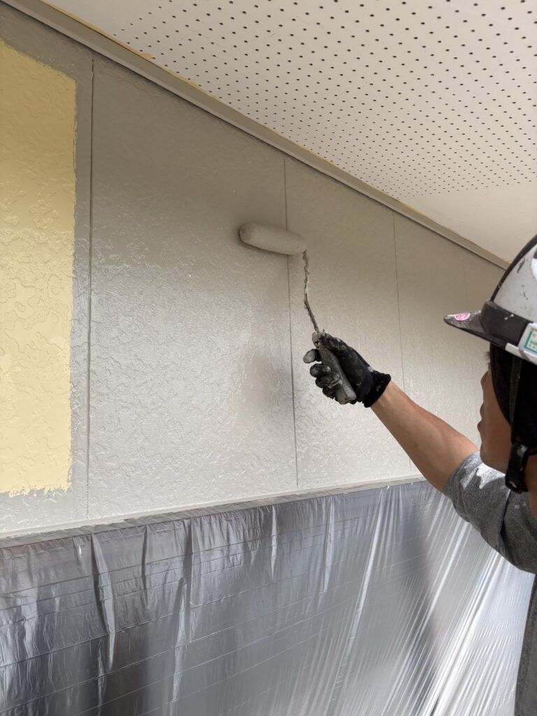 こんにちは、真面目にコツコツ50年住宅塗装に特化した神山塗装工業株式会社の鈴木圭太です。今日の作業は窯業系サイディング外壁の下塗りでした。