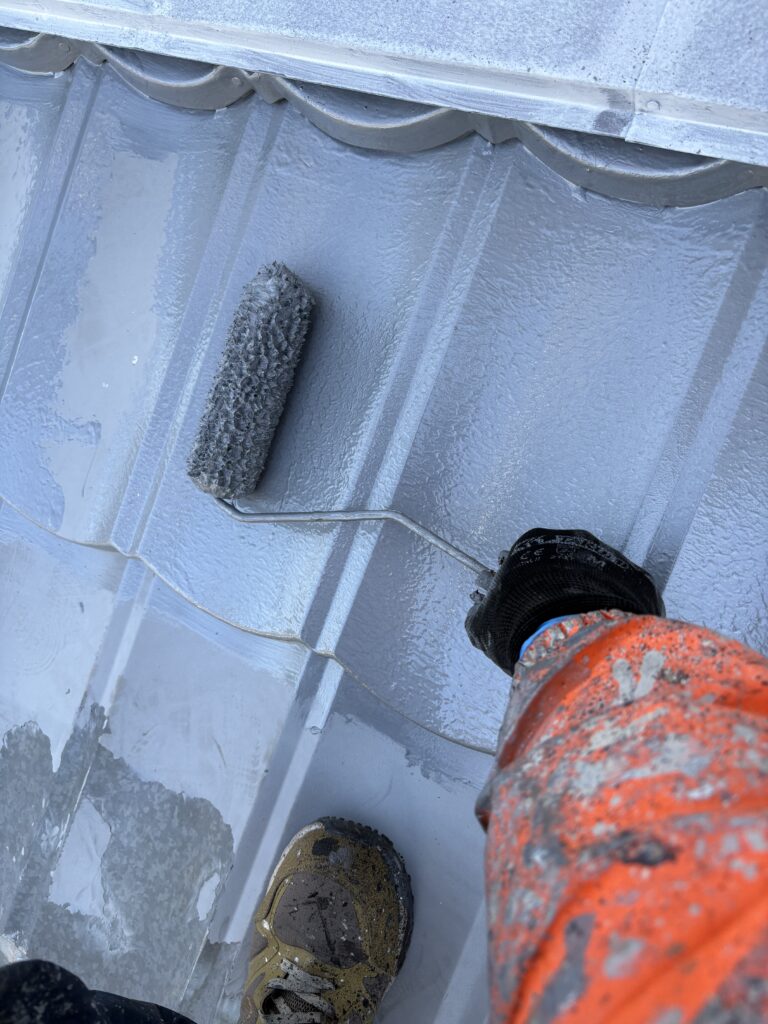 こんにちは、真面目にコツコツ50年住宅塗装に特化した神山塗装工業株式会社の鈴木圭太です。今日の作業はトタン屋根の下塗りでした。