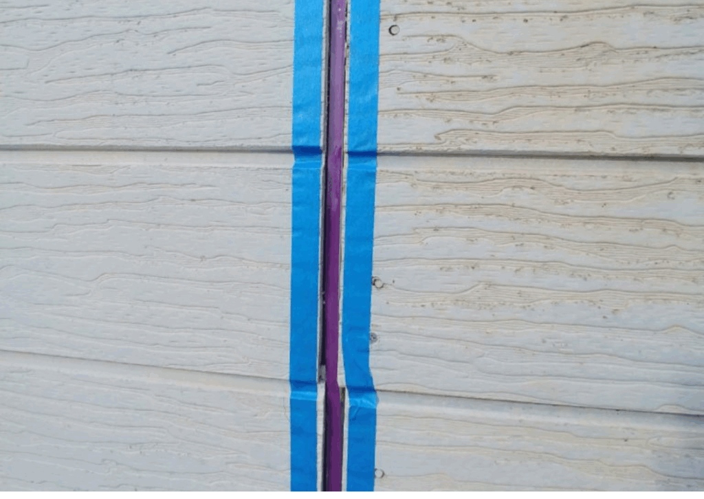 2)溝の両脇をテープで養生をし、必要に応じてバックアップ材を入れます。