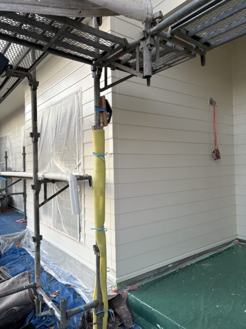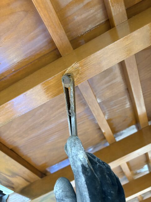 現場ブログこんにちは、神山塗装工業株式会社の鈴木圭太です。今日の作業は玄関の化粧垂木の上塗りでした。 化粧垂木は高圧洗浄とケレンで下地調整し、黒ずみを落としてから塗装します。 垂木が毛羽立たないよう、高圧洗浄は水の勢いが弱めのスト...