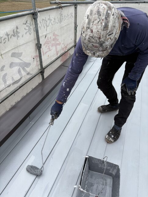現場ブログこんにちは、神山塗装工業株式会社の鈴木圭太です。今日の作業はコロニアル屋根の中塗りでした。 コロニアル屋根の塗装は水性シーラーで下塗りした後、水系屋根用塗料で中塗りと上塗りを行います。 中塗りには水系ナノシリコンを使用し...