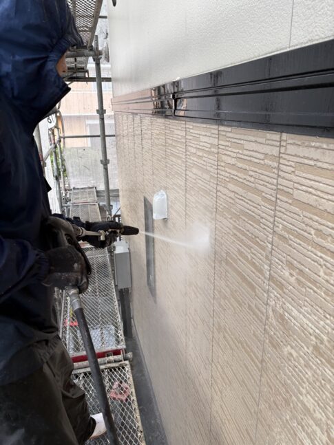 現場ブログこんにちは、神山塗装工業株式会社の鈴木圭太です。今日の作業は外壁の高圧洗浄でした。 高圧洗浄は外壁の旧塗膜や汚れを洗い流し、塗料と外壁の密着力を上げるために行います。 洗浄で出る汚水が飛散しないようにブルーシートを張るな...