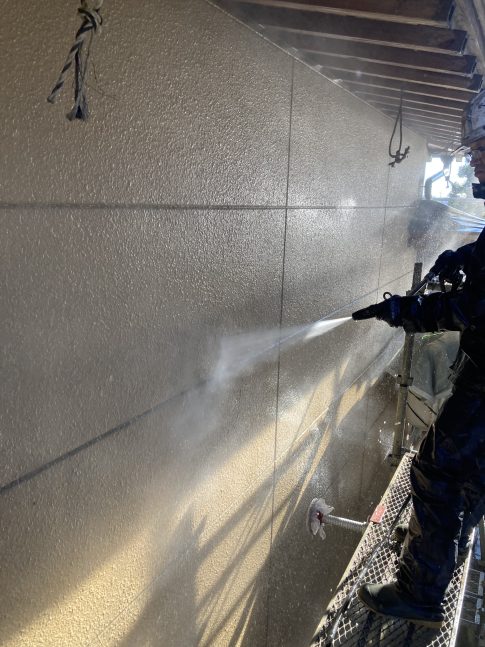 現場ブログこんにちは、神山塗装株式会社の鈴木圭太です。今日の作業はALC外壁の高圧洗浄でした。 今回の現場は平屋と2階建て住宅が隣接しており、外壁の総面積が200㎡以上ある住宅です。 今日は平屋部分の洗浄を行いました! 外壁の高圧...