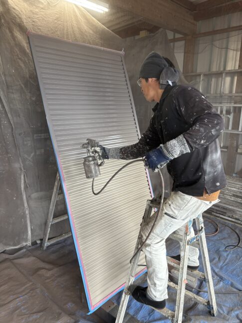 現場ブログこんにちは、神山塗装株式会社の鈴木圭太です。今日の作業は雨戸の吹付塗装でした。 吹付塗装は1級塗装技能士の青木が担当しました。創業本店の車庫内に塗装ブースを設置して行います。 雨戸の塗装にはルーフマイルドSiRを使用し、...