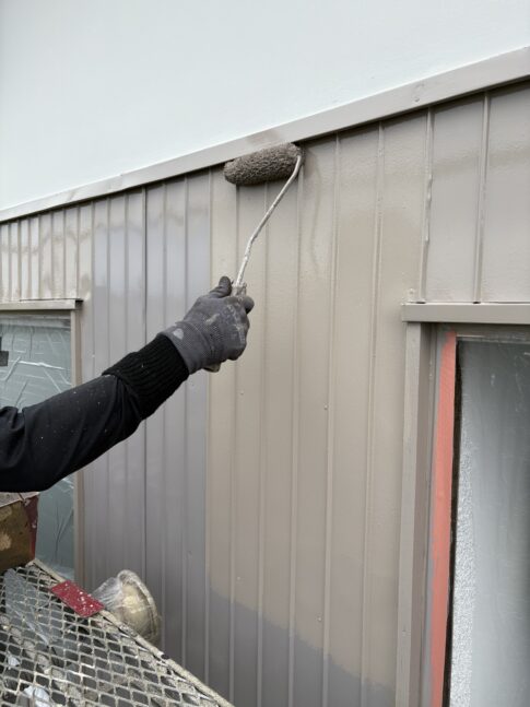 現場ブログこんにちは、神山塗装工業株式会社の鈴木圭太です。今日の作業はトタン外壁の上塗りでした。 上塗りは外壁塗装の最後の工程になるので、塗り残しや塗料の垂れ、透けに注意しながら塗装します! トタン外壁の塗装はRSシルバーマイルド...