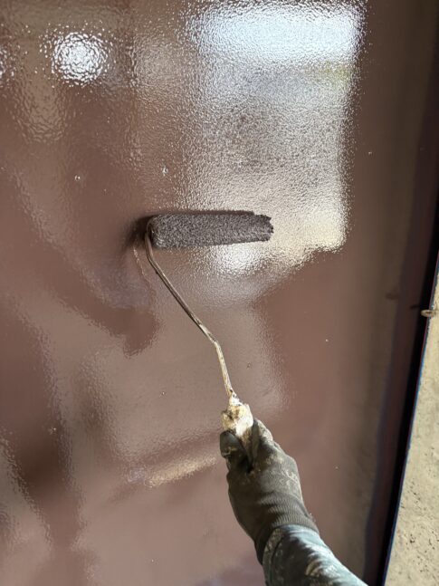 現場ブログこんにちは、神山塗装工業株式会社の鈴木圭太です。今日の作業は納屋扉の上塗りでした。 納屋扉の塗装は、シリコン塗料の1回塗りで仕上げます。扉の表面は白サビでザラザラしていたので、紙ヤスリでケレンを行ってから塗装しました。 ...
